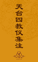 《法华三昧忏仪》一卷。劝修第一,方便第二,正入道场方法第三,正修行方法第四。一严净道场,二净身,三三业供养,四奉请三宝,五赞叹三宝,六礼佛,七忏悔,八行道旋绕,九诵法华经,十思惟一实境界。略明修证相第五。